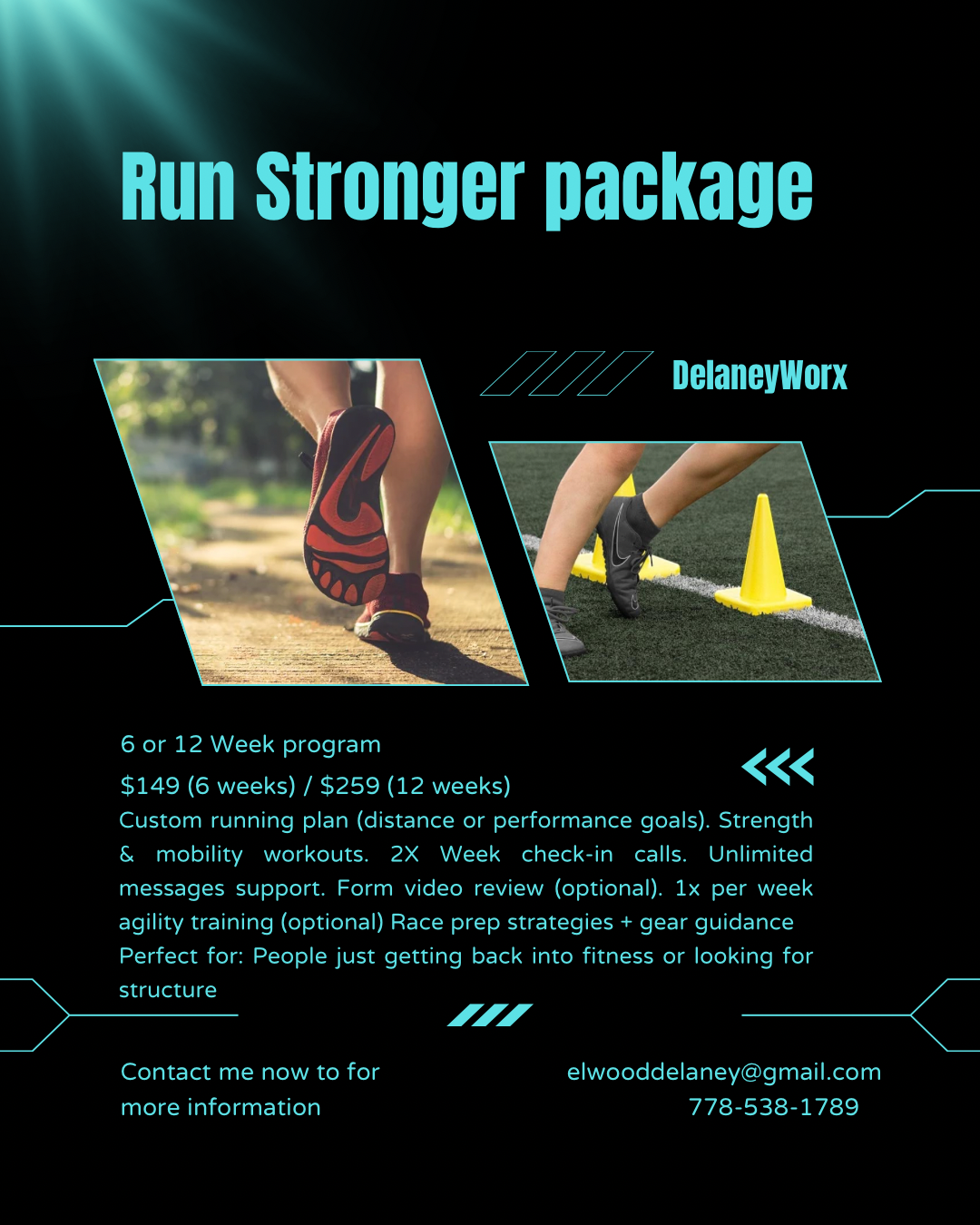 Includes “Run Stronger Coaching” for runners, focusing on improving speed, endurance, and smart training.