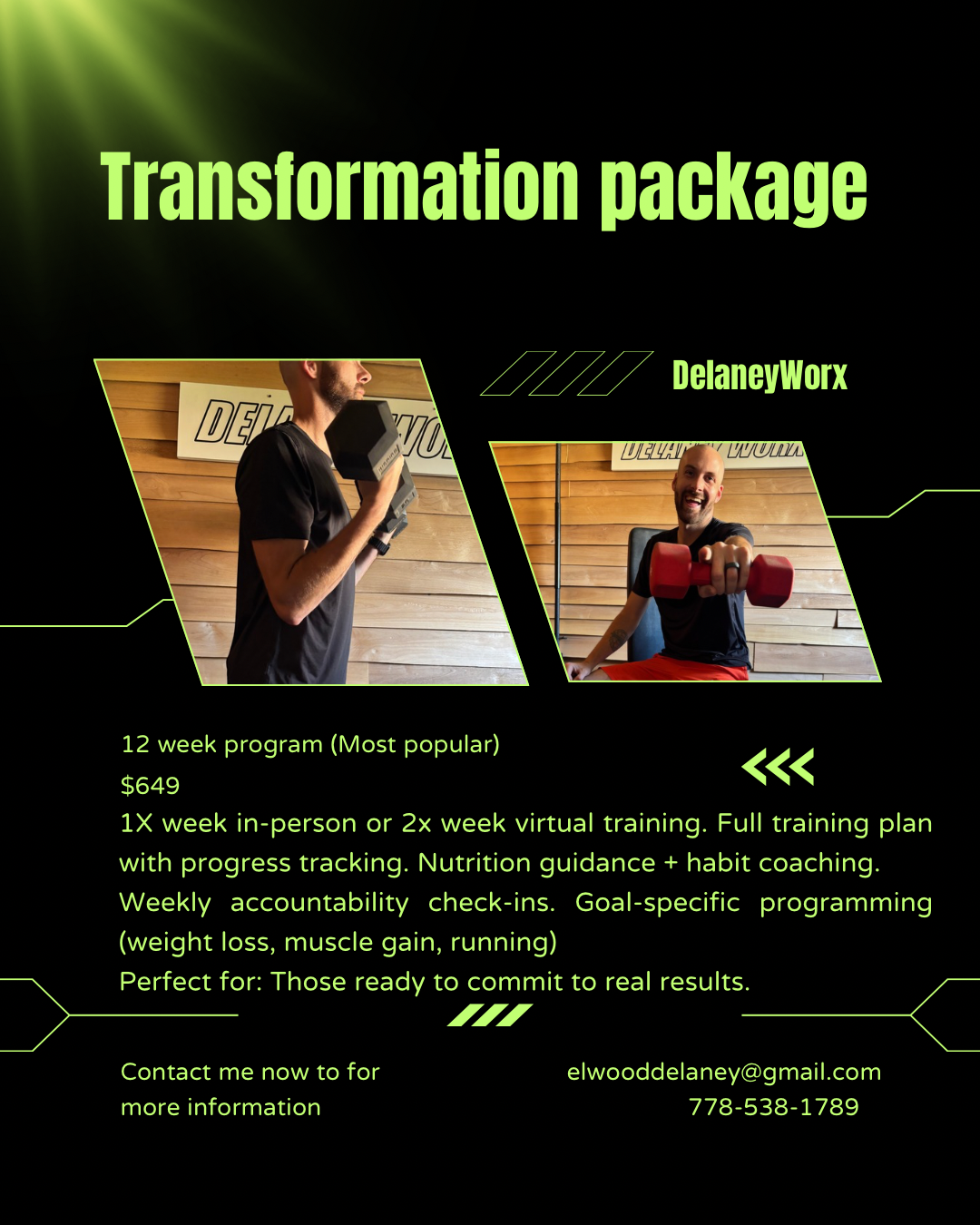 Delaneyworx Fitness – I am currently an Instagram-based fitness coaching service run by myself Elwood Delaney, I specialize in personalized training packages and online coaching, particularly for runners and couples, with a focus on making fitness fun and effective for individual lifestyles.